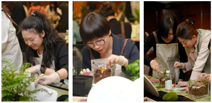 其中,微景觀藝術(shù)沙龍全天分為四場(chǎng),公司總部200余名女性職工積極參與?;顒?dòng)期間,學(xué)員在老師的帶領(lǐng)下,通過(guò)聽(tīng)、聞、看、觸,打開(kāi)并提升自我的感知力,在與自然共處的同時(shí),擁抱自己,接納自己。